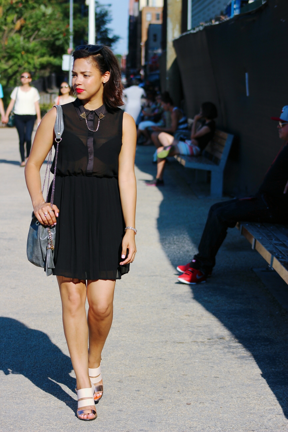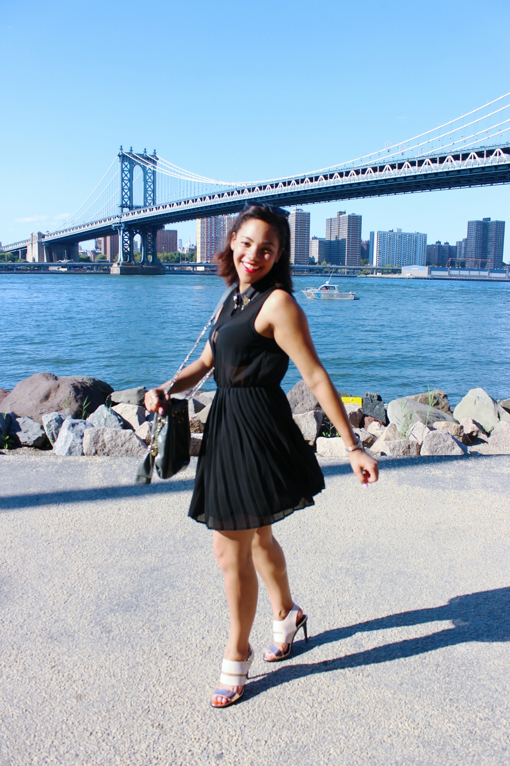 Pleats! Pleats! Pleats! I love and adore this dress I am shocked I have not blogged about this dress sooner! I got this dress back when I was about 20 years old from a thrift shop in Manhattan. The thrift shop name is Buffalo Exchange on 26th and 6th ave. Being a college student and trying to look great was pretty hard with the budget I had placed on myself. I promised myself to go into Buffalo Exchange with a $40 budget once a week ONLY if I kept my $40 food budget for the week. Some weeks I would not buy anything while others I would rack up with amazing finds. This Forever 21 dress was definitely one of those amazing finds and till this day it is in amazing condition. I love this dress because of the neck pins which I change into different button down tops and use it as a pin. (Also because I am a Leo and it is my zodiac sign ) This cute Bucket bag was also one of my thrift finds in Buffalo Exchange.