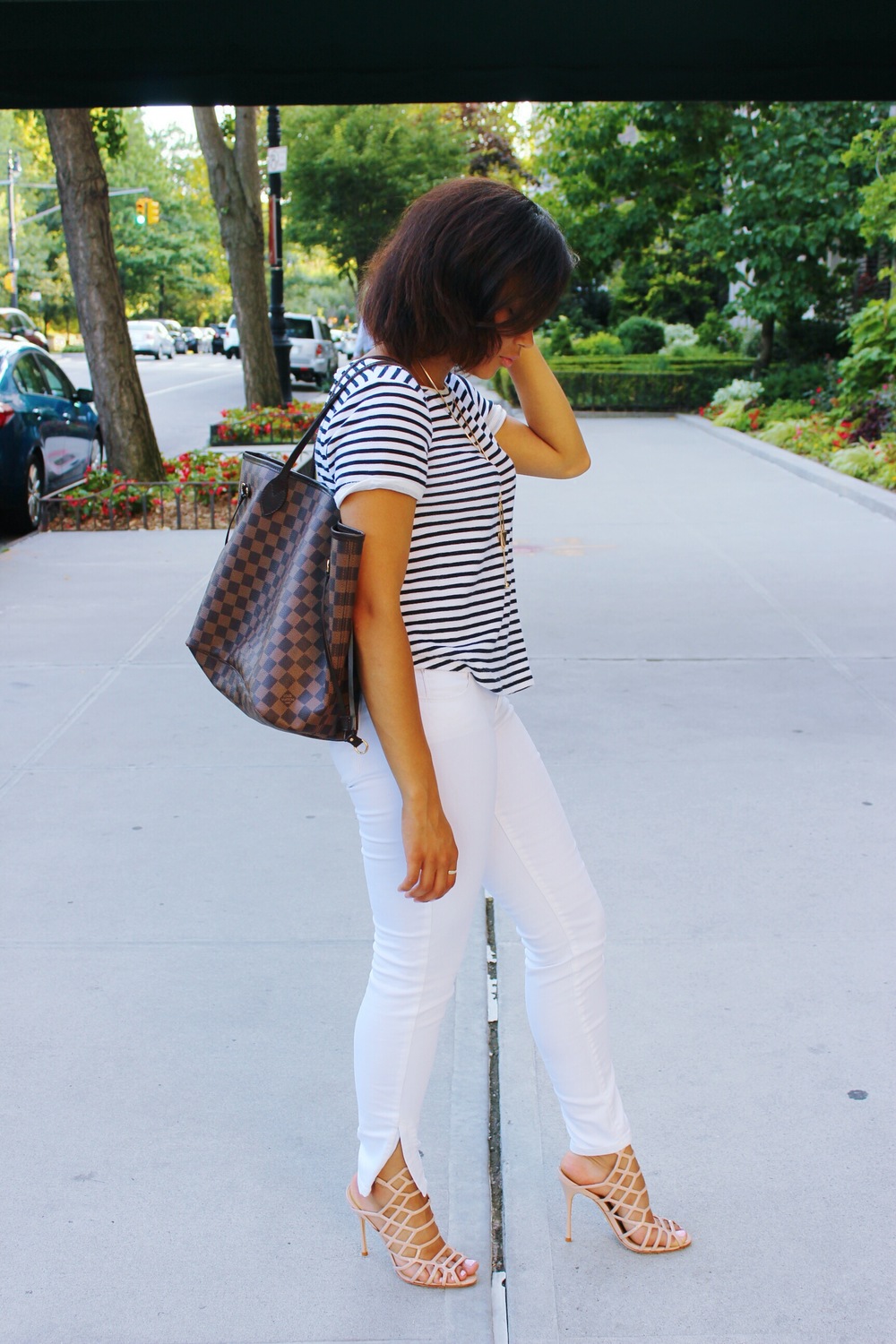 By far my favorite outfit I have put together. I have never been the best at wearing white pants. Usually so scared trying to get anything dirty and one thing for sure is white pants are, well basically white lol. I put this outfit without thinking of all the prints and how well it just blended together. The striped top from Zara gives me a nautical feel as I’m getting ready for a boat dinner. The Schutz shoes were a birthday gift from my mother which I completely adore! These shoes are completely stylish and blend with every single item from my closet. Which that sounds like music to my ears!