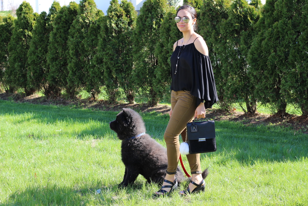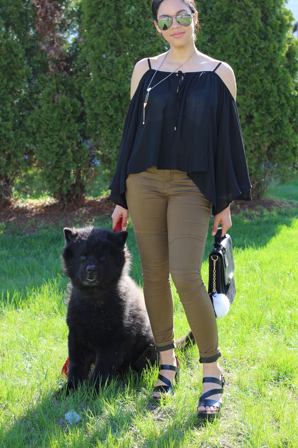 I traveled out to Methuen, Massachusetts this weekend to visit some family and enjoy the weather. Friday afternoon was simply perfect. My brother and I decided to go walk the dog (Floppy) and catch some photos. This Lorel off the Shoulder top is available now in two different colors on http://www.CashmereBoulevard.com/shop