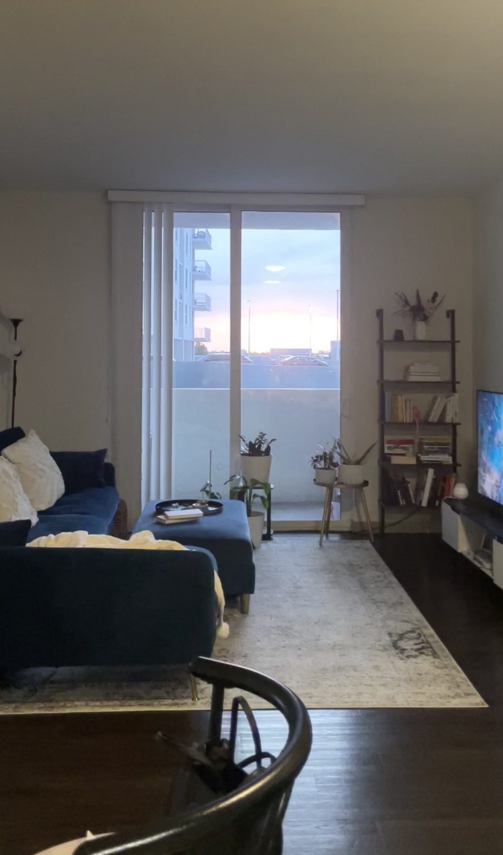 I made a little nook of all my favorite books and gorgeous lego set of flowers. I had the idea to want to get another bookcase for the other side of the balcony doors but never came around. I also used one of the Side tables as a steady plate on top of the ottoman- awesome for when people have drinks and need a place to set things down.